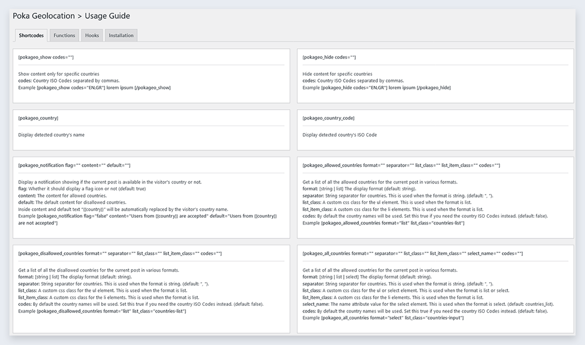 You will find custom shortcodes/blocks to use inside the editor and also the Table & List affiliate blocks have integrated Geo-location support!